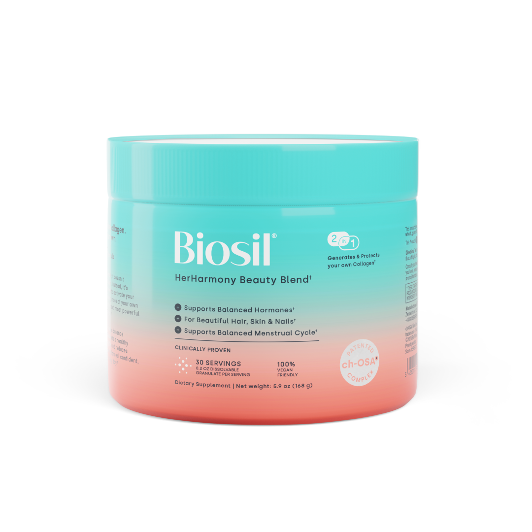 What’s in it and what’s not:ch-OSA®, our patented and uniquely effective complex, D-chiro inositol and Myo-inositol are the main active ingredients in Biosil® HerHarmony Beauty Blend. The other ingredients are Modified starch, calcium triphosphate and silicon dioxide.
